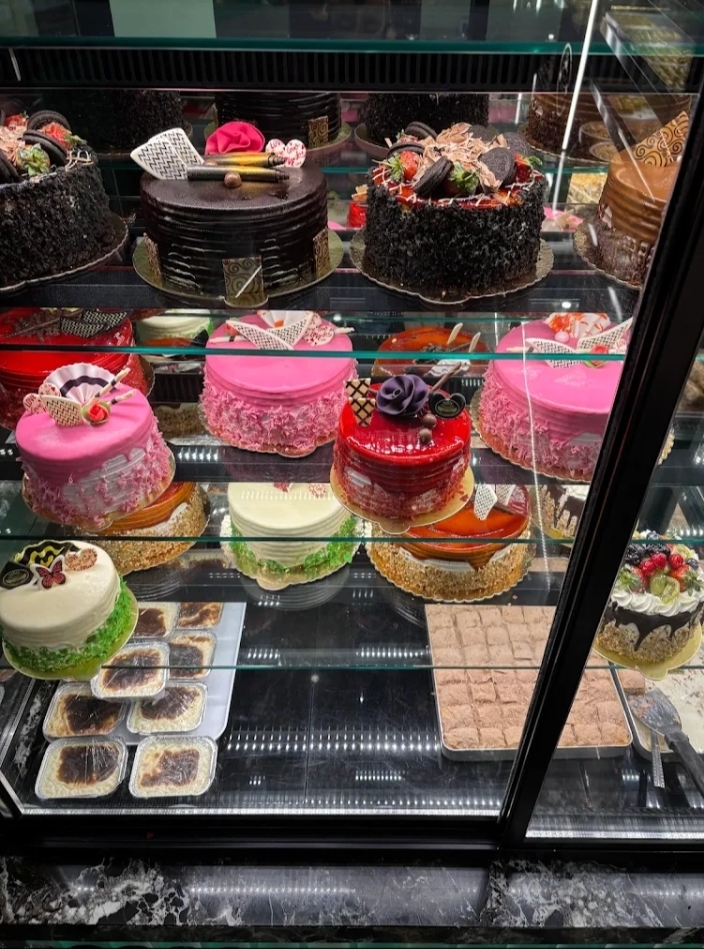 Pastalar, tatlılar, kahve ve börekler gibi günlük taze ürünler sunulur.